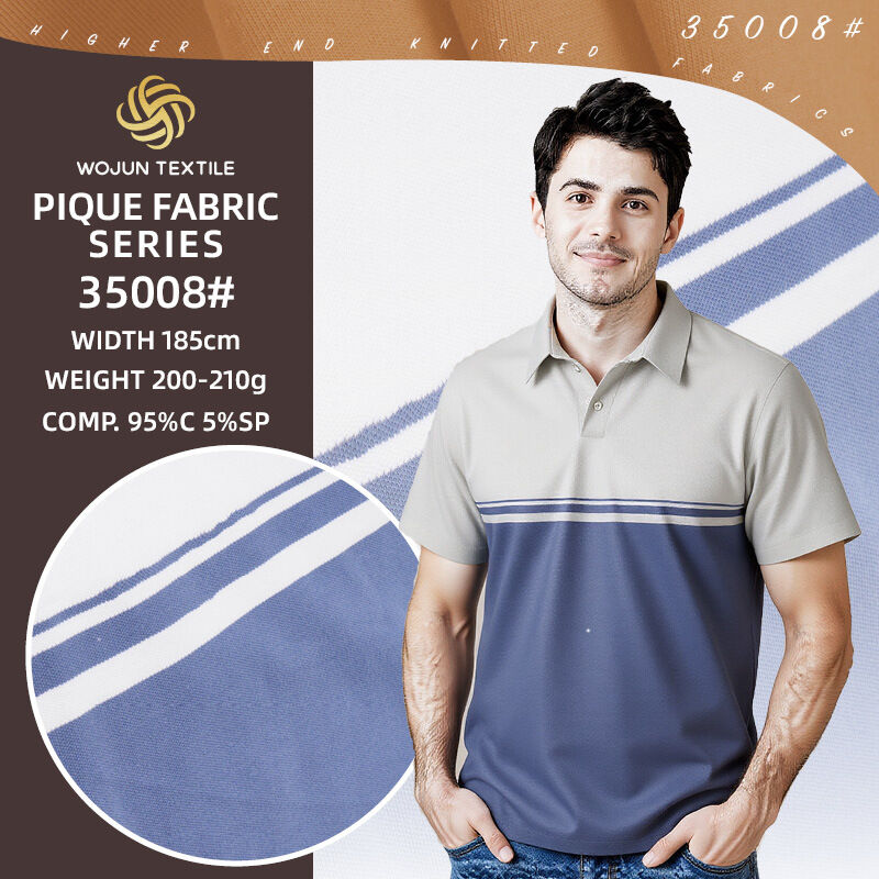 Striped Cotton Pique Fabric: 210gsm Stretch Texture for Premium Tees